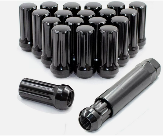 20 BLACK SPLINE LUG NUTS 14X1.5 FOR FORD MUSTANG 2015 & NEWER 2 INCHES TALL AGGRESSIVE STYLE!