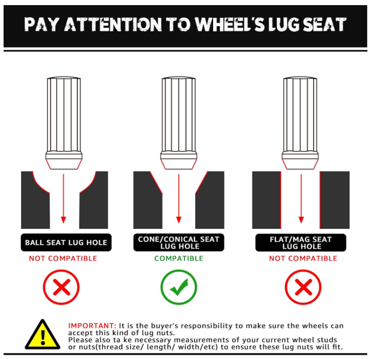 Todos nuestros Lug s están hechos de acero de la más alta calidad. Están asegurados con un asiento cónico de 60 grados para un ajuste perfecto y seguro . El acabado tipo espejo resistirá los elementos y permanecerá brillante y brillante con el mantenimiento adecuado. Tenga en cuenta que recibirá algunos de los productos de MÁS ALTA CALIDAD que el mercado tiene para ofrecer. ¡COMPRE CON CONFIANZA!